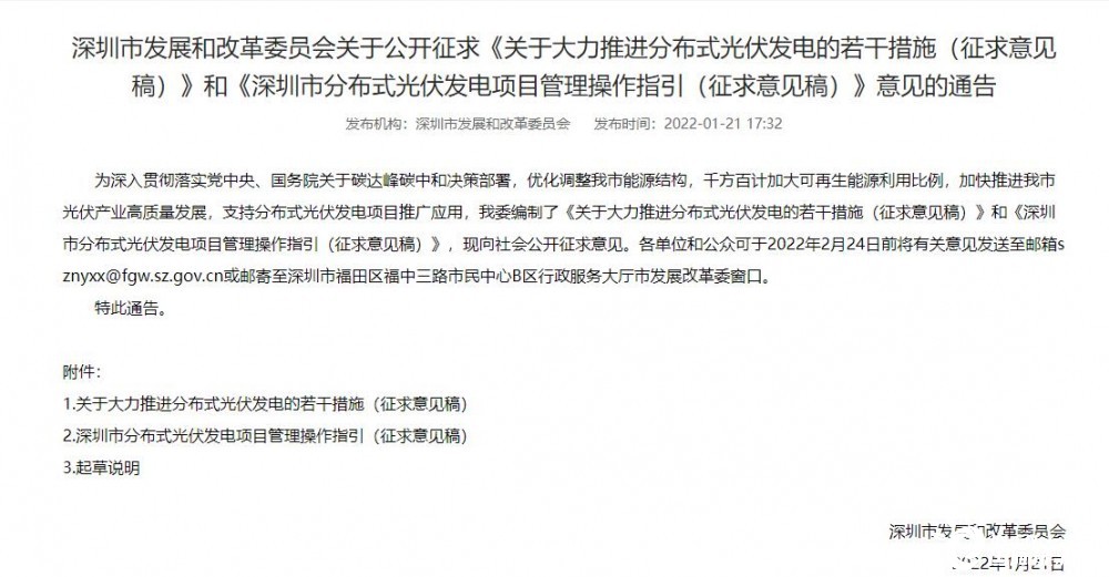 近日,深圳市發(fā)改委發(fā)布《關(guān)于大力推進(jìn)分布式光伏發(fā)電的若干措施(征求意見(jiàn)稿)》(以下簡(jiǎn)稱《若干措施》)和《深圳市分布式光伏發(fā)電項(xiàng)目管理操作指引(征求意見(jiàn)稿)》(以下簡(jiǎn)稱《操作指引》)。從中獲悉,深圳將建立光伏產(chǎn)業(yè)骨干企業(yè)培育機(jī)制,努力形成一批本地光伏頭部企業(yè)。