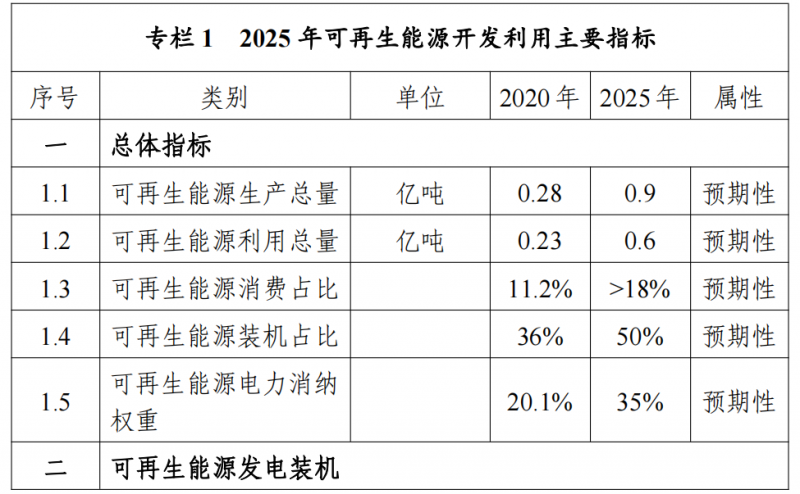 “十四五”時期主要發(fā)展目標如下:——可再生能源總量目標。2025 年,自治區(qū)可再生能源供給能力顯著提高,可再生能源生產(chǎn)總量超過 9000 萬噸標準煤,可再生能源區(qū)內(nèi)利用量超過 6000 萬噸標準煤,占當年一次能源消費總量的 18%以上,超過全國平均水平。——可再生能源發(fā)電目標。自治區(qū)可再生能源發(fā)電裝機達到 1.35 億千瓦以上,其中風電 8900 萬千瓦、光伏發(fā)電 4500 萬千瓦,新能源裝機規(guī)模超過燃煤火電裝機規(guī)模,新能源發(fā)電量占自治區(qū)總發(fā)電量比重超過 35%。“十四五”期間可再生能源新增裝機 8000 萬千瓦以上,占全部新增裝機的比重超過 60%,成為新增裝機的主力。——可再生能源并網(wǎng)運行目標。全區(qū)可再生能源在更大 規(guī)模發(fā)展的情況下實現(xiàn)合理利用,平均利用率保持在 90%以上,可再生能源發(fā)電能力持續(xù)提升并領先全國。