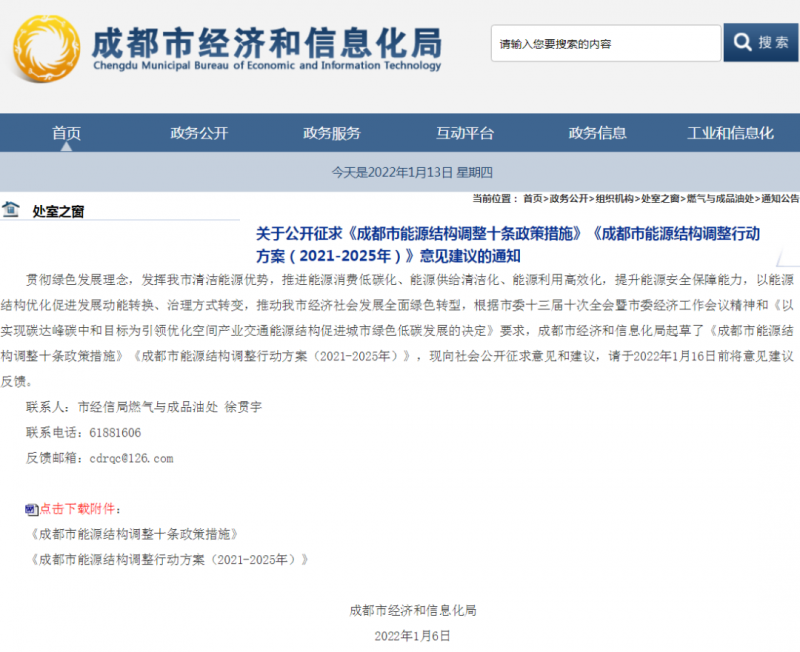 1月10日,成都市經(jīng)濟和信息化局發(fā)布關(guān)于公開征求《成都市能源結(jié)構(gòu)調(diào)整十條政策措施》《成都市能源結(jié)構(gòu)調(diào)整行動方案(2021-2025年)》意見建議的通知。支持先進儲能發(fā)展應(yīng)用。積極推進電源、電網(wǎng)、用戶側(cè)配套建設(shè)儲能示范建設(shè),按儲能設(shè)施規(guī)模200元/千瓦給予補助。