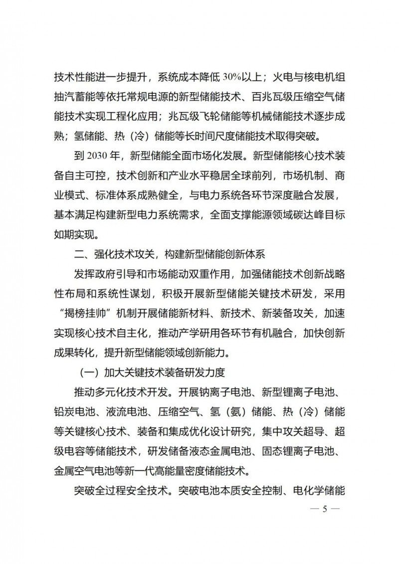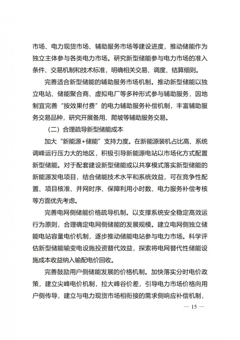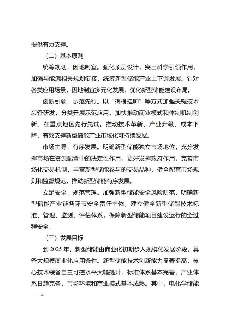 一)總體要求。一是指導(dǎo)思想中明確堅(jiān)持以技術(shù)創(chuàng)新為內(nèi)生動(dòng)力、以市場機(jī)制為根本依托、以政策環(huán)境為有力保障,穩(wěn)中求進(jìn)推動(dòng)新型儲(chǔ)能高質(zhì)量、規(guī)?;l(fā)展的總體思路。二是基本原則中充分體現(xiàn)了以規(guī)劃為引領(lǐng)、以創(chuàng)新為驅(qū)動(dòng)、以市場為主導(dǎo)、以機(jī)制為保障、以安全為底線的發(fā)展思路,明確統(tǒng)籌規(guī)劃、因地制宜,創(chuàng)新引領(lǐng)、示范先行,市場主導(dǎo)、有序發(fā)展,立足安全、規(guī)范管理四項(xiàng)發(fā)展原則。三是在發(fā)展目標(biāo)中,更注重通過支持技術(shù)和商業(yè)模式創(chuàng)新、健全標(biāo)準(zhǔn)體系、完善政策機(jī)制等措施,充分激發(fā)市場活力,推動(dòng)構(gòu)建以需求為導(dǎo)向,以充分發(fā)揮新型儲(chǔ)能價(jià)值為目標(biāo)的高質(zhì)量規(guī)?;l(fā)展格局。