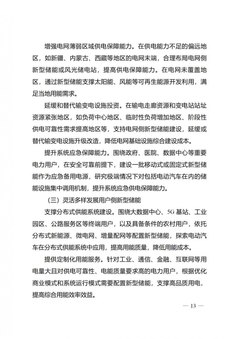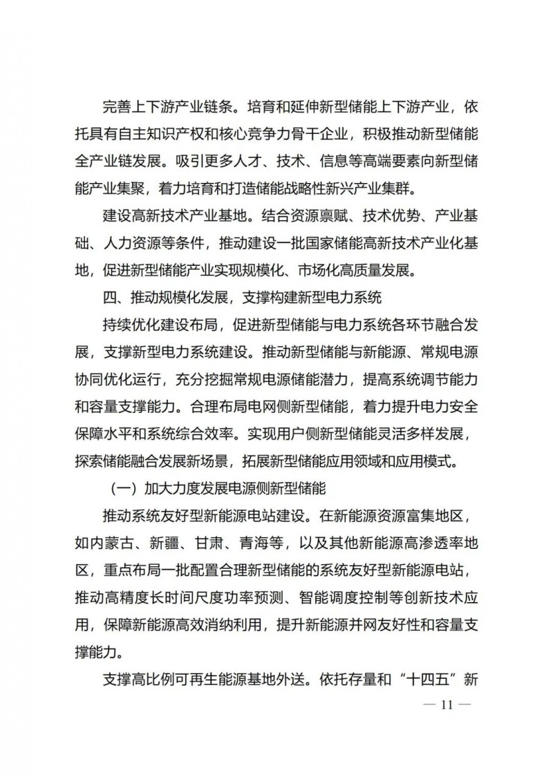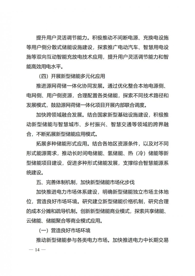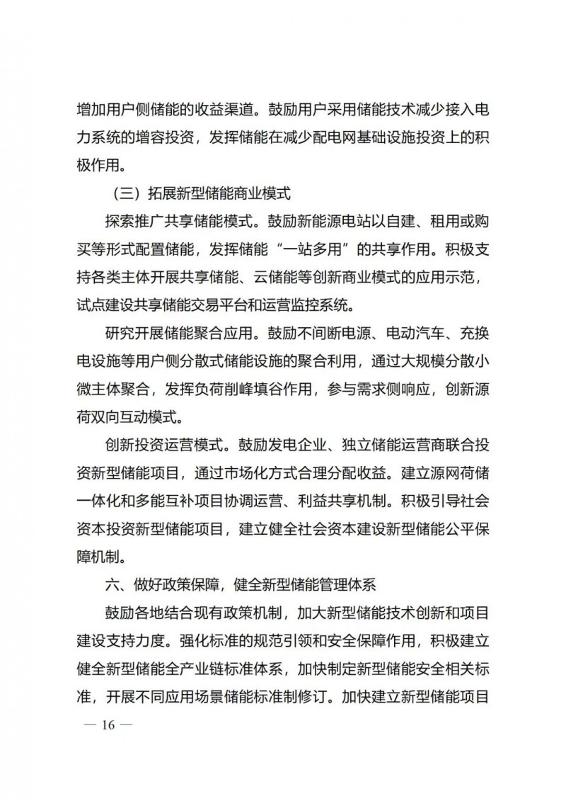 一)總體要求。一是指導(dǎo)思想中明確堅(jiān)持以技術(shù)創(chuàng)新為內(nèi)生動(dòng)力、以市場機(jī)制為根本依托、以政策環(huán)境為有力保障,穩(wěn)中求進(jìn)推動(dòng)新型儲(chǔ)能高質(zhì)量、規(guī)?;l(fā)展的總體思路。二是基本原則中充分體現(xiàn)了以規(guī)劃為引領(lǐng)、以創(chuàng)新為驅(qū)動(dòng)、以市場為主導(dǎo)、以機(jī)制為保障、以安全為底線的發(fā)展思路,明確統(tǒng)籌規(guī)劃、因地制宜,創(chuàng)新引領(lǐng)、示范先行,市場主導(dǎo)、有序發(fā)展,立足安全、規(guī)范管理四項(xiàng)發(fā)展原則。三是在發(fā)展目標(biāo)中,更注重通過支持技術(shù)和商業(yè)模式創(chuàng)新、健全標(biāo)準(zhǔn)體系、完善政策機(jī)制等措施,充分激發(fā)市場活力,推動(dòng)構(gòu)建以需求為導(dǎo)向,以充分發(fā)揮新型儲(chǔ)能價(jià)值為目標(biāo)的高質(zhì)量規(guī)?;l(fā)展格局。