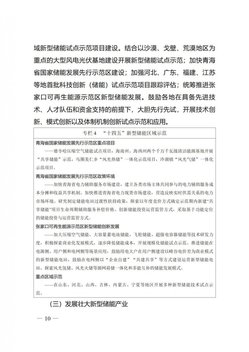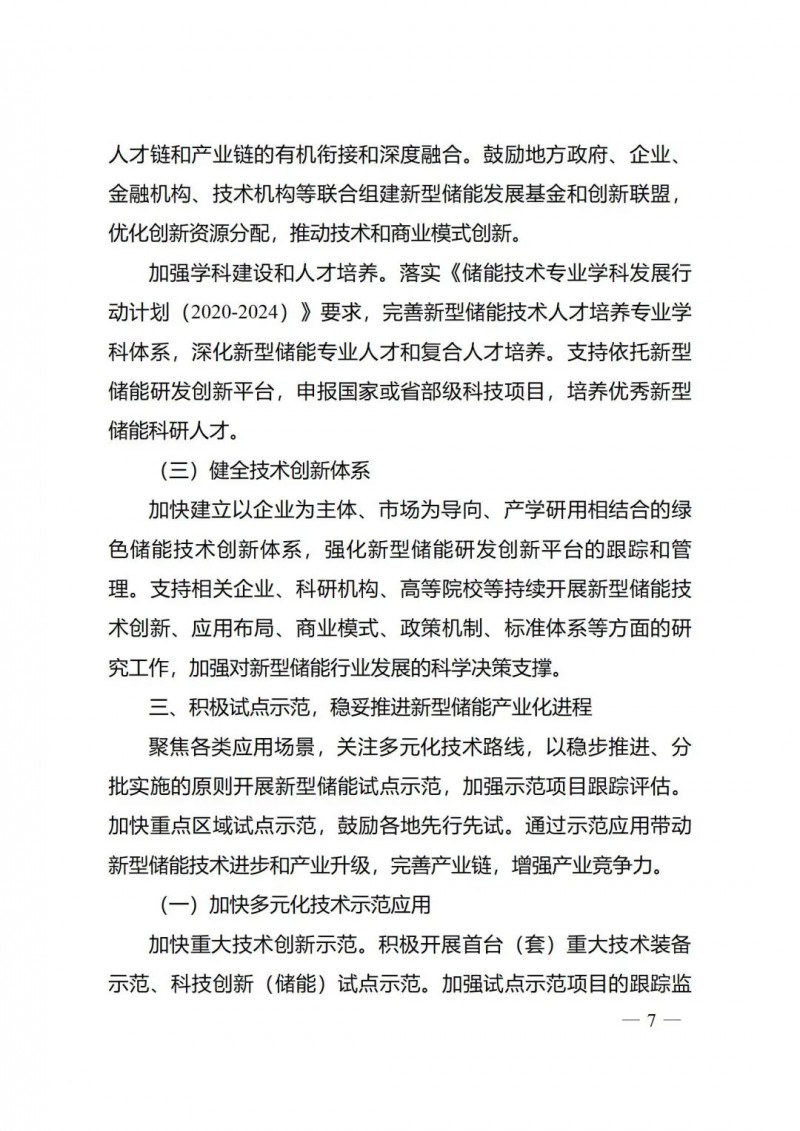 二是強(qiáng)化示范引領(lǐng)帶動(dòng)產(chǎn)業(yè)發(fā)展?!秾?shí)施方案》聚焦新型儲(chǔ)能多元化技術(shù)路線、不同時(shí)間尺度技術(shù)和各類應(yīng)用場景,以穩(wěn)步推進(jìn)、分批實(shí)施的原則推動(dòng)先進(jìn)儲(chǔ)能技術(shù)試點(diǎn)示范,加快首臺(tái)(套)重大技術(shù)裝備等重點(diǎn)技術(shù)的創(chuàng)新示范,以工程實(shí)踐加速技術(shù)迭代和更新,促進(jìn)成本下降;推動(dòng)重點(diǎn)區(qū)域開展區(qū)域性儲(chǔ)能示范區(qū)建設(shè),結(jié)合應(yīng)用場景積極推動(dòng)制定差異化政策,在一些創(chuàng)新成果多、體制基礎(chǔ)好、改革走在前的地區(qū)實(shí)現(xiàn)重點(diǎn)突破。結(jié)合新型儲(chǔ)能處于商業(yè)化初期階段實(shí)際,《實(shí)施方案》鼓勵(lì)各地在新型儲(chǔ)能發(fā)展工作中,堅(jiān)持“示范先行”原則,避免“一刀切”上規(guī)模,積極開展技術(shù)創(chuàng)新、健全市場體系和政策機(jī)制方面的試點(diǎn)示范。通過示范應(yīng)用帶動(dòng)技術(shù)進(jìn)步和產(chǎn)業(yè)升級(jí),推動(dòng)完善儲(chǔ)能上下游產(chǎn)業(yè)鏈條,支持儲(chǔ)能高新技術(shù)產(chǎn)業(yè)基地建設(shè)。