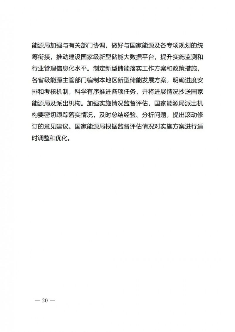 三)保障措施。為保障《實(shí)施方案》有效落地,提出系列具體保障措施。在協(xié)調(diào)保障方面,提出建立包含國家發(fā)展改革委、國家能源局與有關(guān)部門的多部門協(xié)調(diào)機(jī)制,做好與各項(xiàng)規(guī)模統(tǒng)籌銜接;在行業(yè)管理方面,提出建設(shè)國家級(jí)新型儲(chǔ)能大數(shù)據(jù)平臺(tái),開展實(shí)施方案各項(xiàng)重點(diǎn)任務(wù)監(jiān)測(cè),提升行業(yè)管理信息化水平;在責(zé)任落實(shí)方面,要求各省級(jí)能源主管部門編制新型儲(chǔ)能發(fā)展方案,明確各項(xiàng)任務(wù)進(jìn)度和考核機(jī)制。同時(shí),國家能源局根據(jù)監(jiān)督評(píng)估情況,適時(shí)對(duì)實(shí)施方案進(jìn)行優(yōu)化調(diào)整。