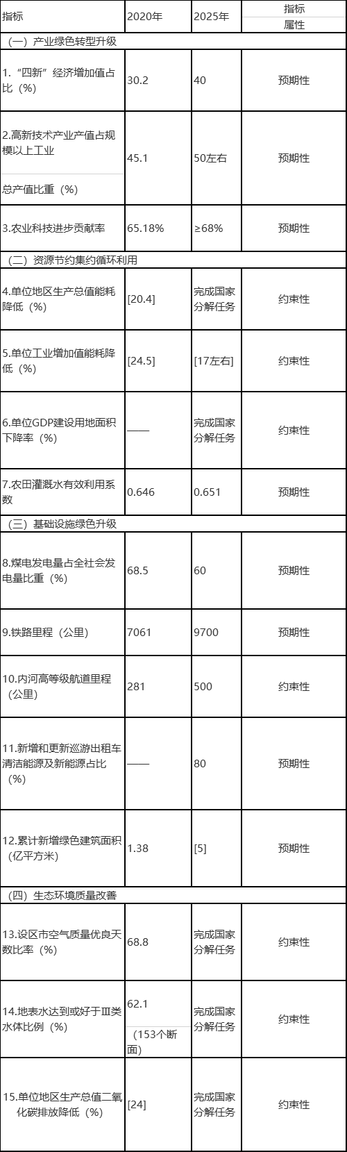 山東省“十四五”綠色低碳循環(huán)發(fā)展主要指標(biāo)