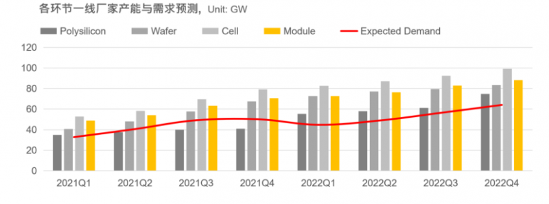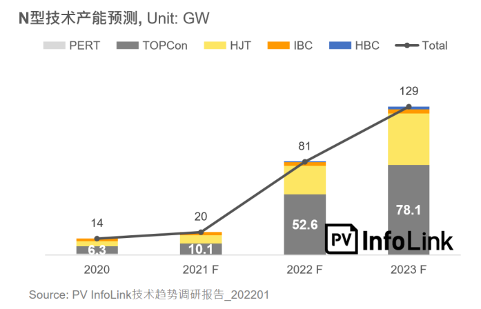 在PVInfolink的技術(shù)趨勢報告中,到2022年底,N型產(chǎn)能將突破80GW。但對于產(chǎn)業(yè)鏈來說,這80GW的數(shù)字背后,意味著從多晶硅、硅片、電池到設(shè)備等上下游環(huán)節(jié)的快速匹配,同時還需要考慮的是成本、出貨與市場。