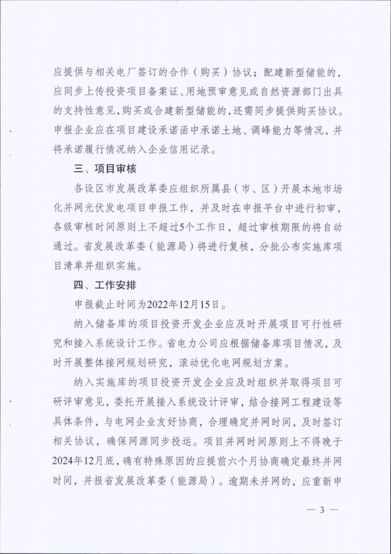 各區(qū)市發(fā)改委組織所屬縣開展項目申報,各級審核期限不得超過5日,否則將自動通過。項目申報截止日期為2022年12月15日。