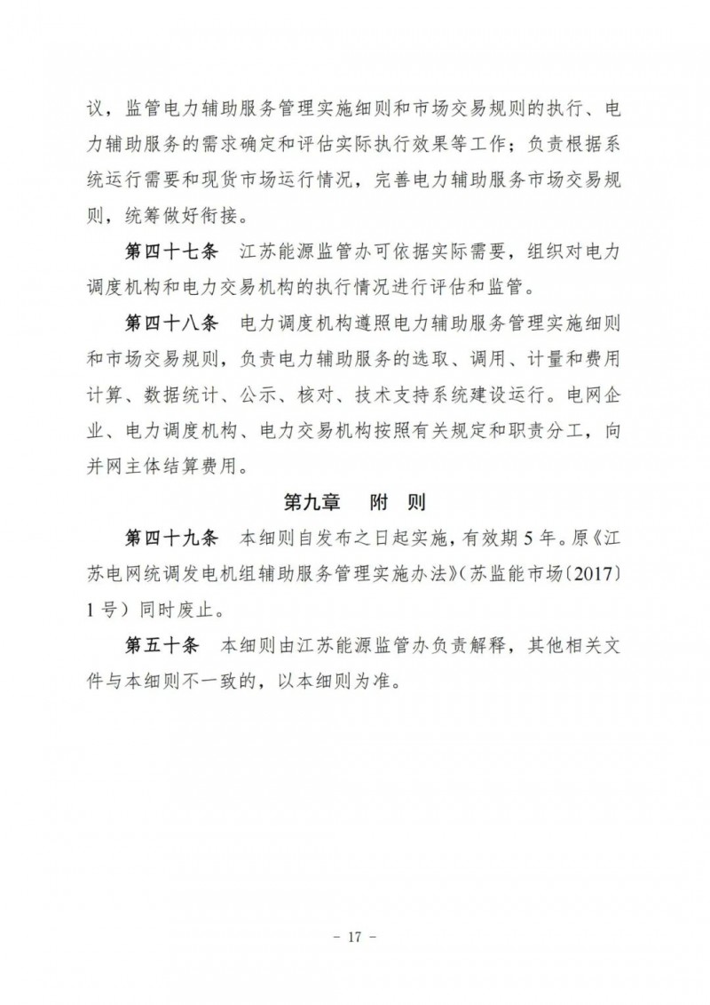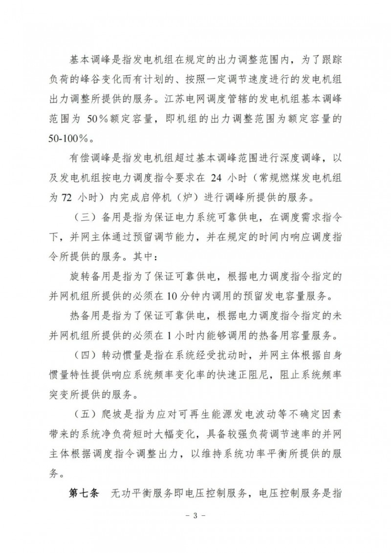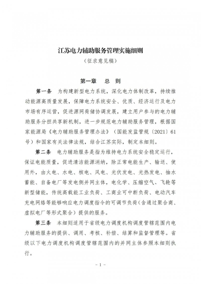 江蘇電力輔助服務管理實施細則(征求意見稿)