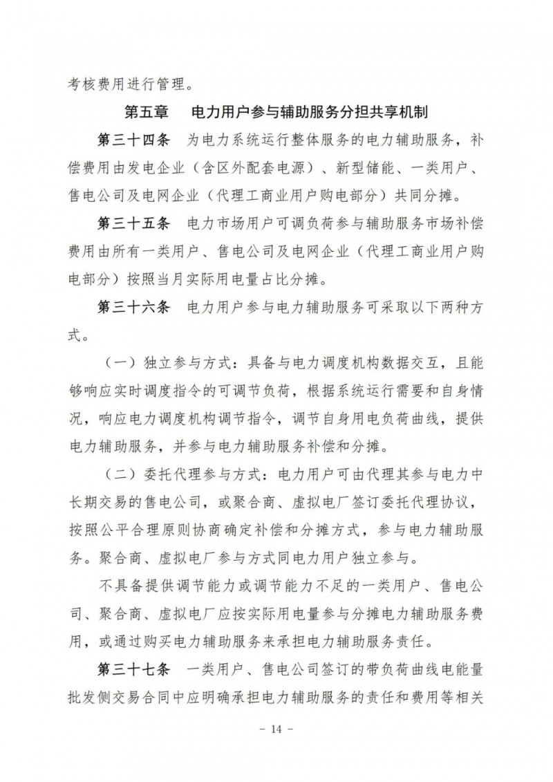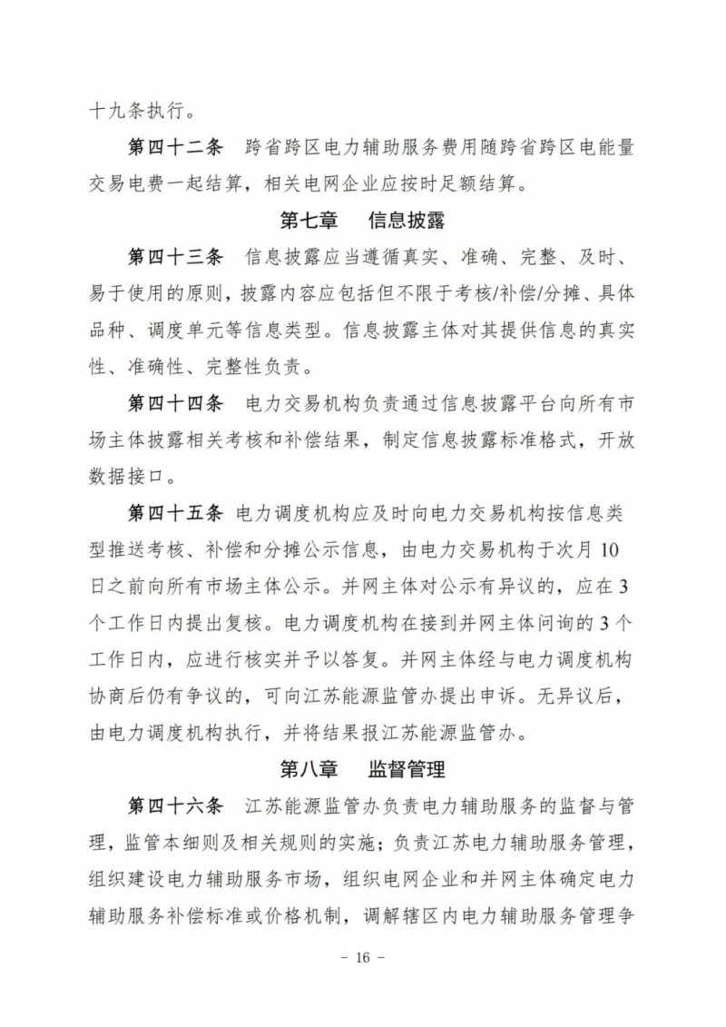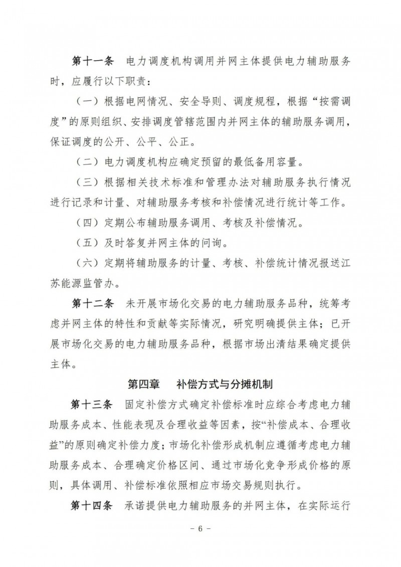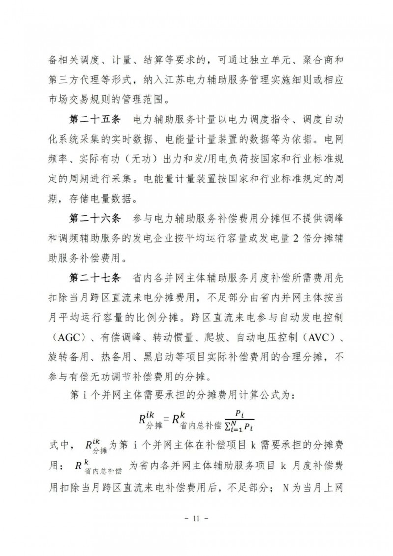 江蘇電力輔助服務管理實施細則(征求意見稿)