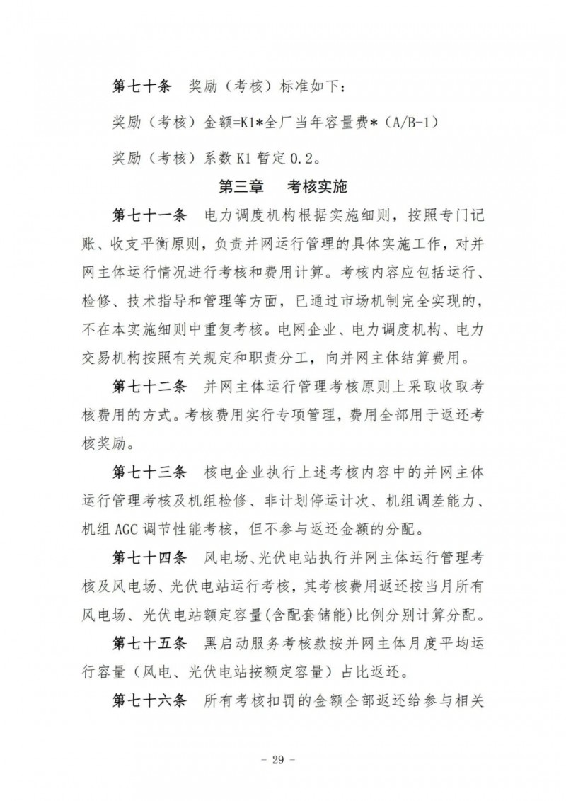 風電場、光伏電站執(zhí)行并網(wǎng)主體運行管理考核及風電場、光伏電站運行考核,其考核費用返還按當月所有風電場、光伏電站額定容量(含配套儲能)比例分別計算分配。