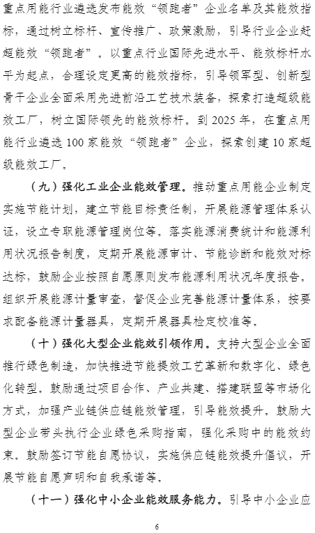 計(jì)劃提出,到2025年,重點(diǎn)工業(yè)行業(yè)能效全面提升,數(shù)據(jù)中心等重點(diǎn)領(lǐng)域能效明顯提升,綠色低碳能源利用比例顯著提高,節(jié)能提效工藝技術(shù)裝備廣泛應(yīng)用,標(biāo)準(zhǔn)、服務(wù)和監(jiān)管體系逐步完善,鋼鐵、石化化工、有色金屬、建材等行業(yè)重點(diǎn)產(chǎn)品能效達(dá)到國(guó)際先進(jìn)水平,規(guī)模以上工業(yè)單位增加值能耗比2020年下降13.5%。能盡其用、效率至上成為市場(chǎng)主體和公眾的共同理念和普遍要求,節(jié)能提效進(jìn)一步成為綠色低碳的“第一能源”和降耗減碳的首要舉措。