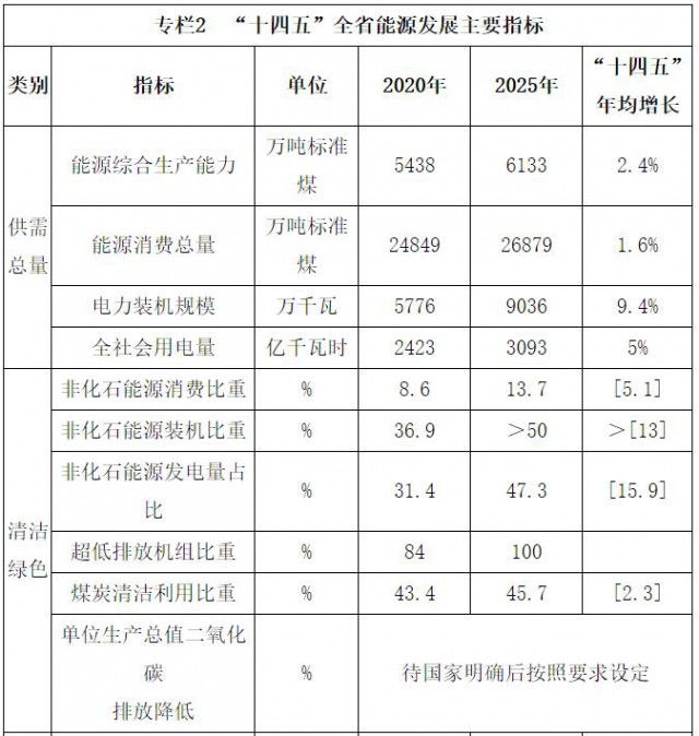 按照構(gòu)建清潔低碳、安全高效的現(xiàn)代能源體系和著力建設(shè)清潔能源強(qiáng)省的目標(biāo)要求,到“十四五”末全省能源發(fā)展主要目標(biāo)是: