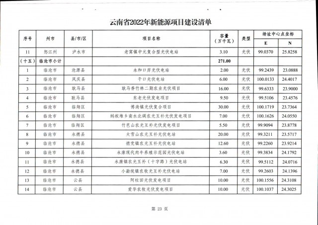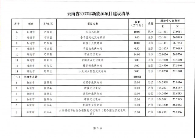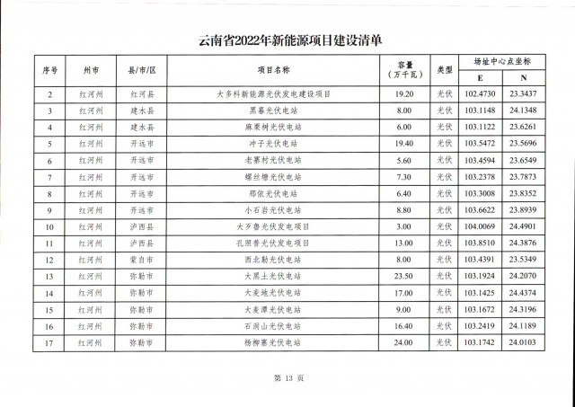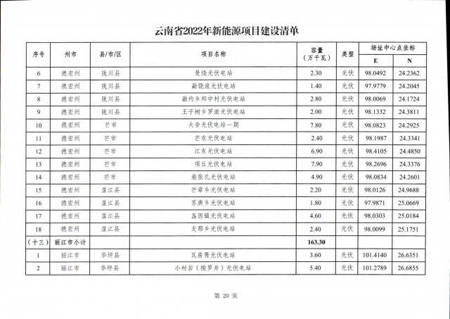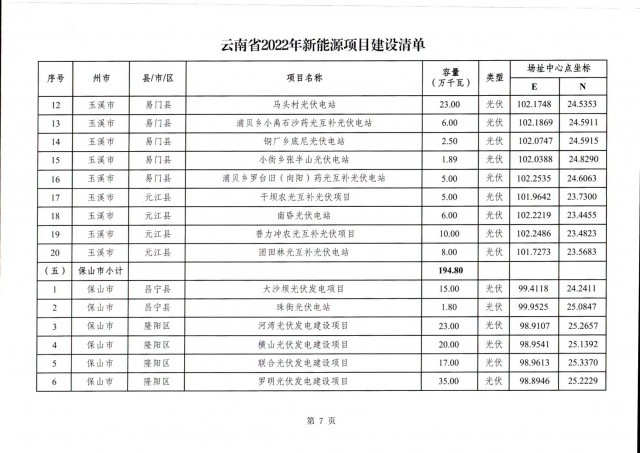 根據(jù)項(xiàng)目清單來看(附件查看清單),昆明市193.8萬千瓦、昭通市129.9萬千瓦、曲靖市440.6萬千瓦、玉溪市216.89萬千瓦、保山市194.8萬千瓦、楚雄州556.46萬千瓦、紅河州206.6萬千瓦、文山州231萬千瓦、普洱市101.5萬千瓦、西雙版納州91.5萬千瓦、大理州259.99萬千瓦、德宏州56.1萬千瓦、麗江市163.3萬千瓦、怒江州87.1萬千瓦、臨滄市271萬千瓦。