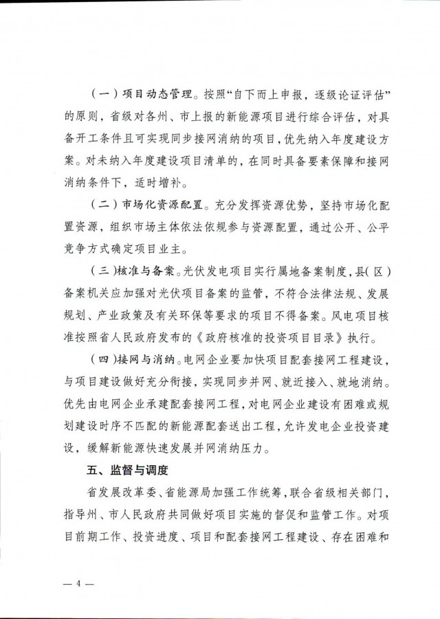 在時(shí)間計(jì)劃上,光伏項(xiàng)目按照2022年8月前完成項(xiàng)目備案,2022年10月前全面開工建設(shè)。裝機(jī)規(guī)模10萬千瓦及以下項(xiàng)目,2023年4月前應(yīng)具備投產(chǎn)條件;10萬千瓦以上項(xiàng)目,2023年6月前應(yīng)具備投產(chǎn)條件。全容量并網(wǎng)時(shí)間不得超過2023年12月底。風(fēng)電項(xiàng)目2022年11月底前具備核準(zhǔn)條件,2023年7月前全面開工建設(shè)。