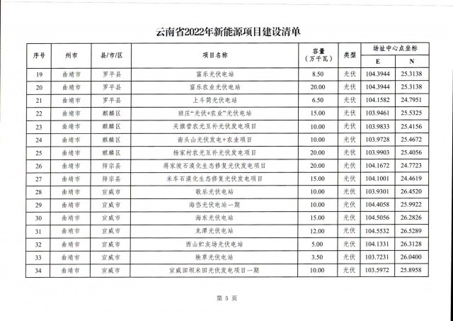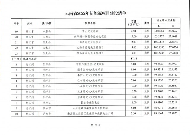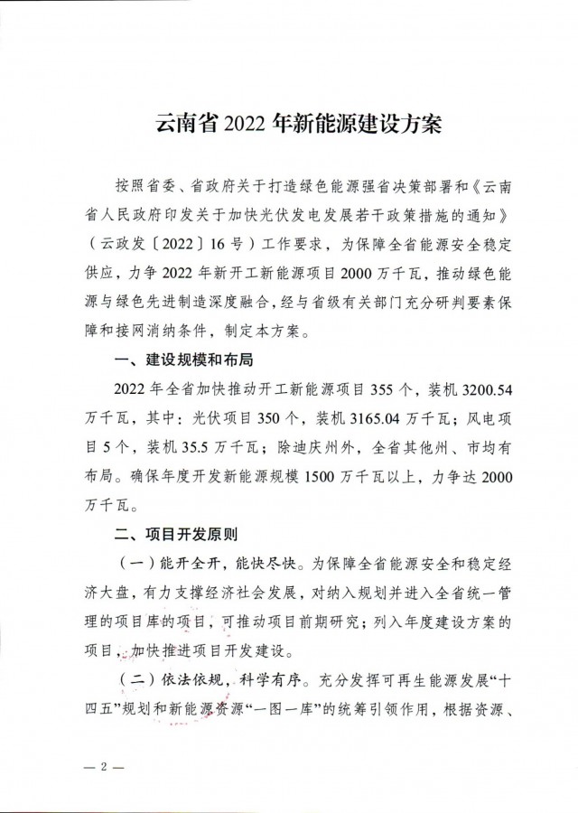 事實(shí)上,此前7月12日云南省能源局就發(fā)布了《關(guān)于征求2022年新能源建設(shè)方案》和《關(guān)于征求2022年新能源項(xiàng)目投產(chǎn)并網(wǎng)有關(guān)意見建議的函》,文件中云南省公示了共1702.04萬千瓦的新能源投產(chǎn)并網(wǎng)的項(xiàng)目清單,其中光伏975.6萬千瓦,風(fēng)電726.44萬千瓦。(點(diǎn)擊查看:云南17GW新能源并網(wǎng)項(xiàng)目清單:三峽、華能領(lǐng)銜,云南能投、華電、大唐等超1GW)此次正式下發(fā)的文件做出了一些變動。
