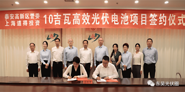 泰安高新區(qū)黨工委委員、高新發(fā)展集團(tuán)黨委書(shū)記、董事長(zhǎng)姚來(lái)新與道得投資風(fēng)控總監(jiān)劉靜雯簽訂項(xiàng)目合作協(xié)議。據(jù)了解,該項(xiàng)目總投資40億元以上,將分為兩期建設(shè),首期建設(shè)5吉瓦TOPCon電池生產(chǎn)線,二期建設(shè)5吉瓦TOPCon電池生產(chǎn)線。該項(xiàng)目旨在整合新能源產(chǎn)業(yè)鏈,助力實(shí)現(xiàn)雙碳戰(zhàn)略,預(yù)計(jì)年可實(shí)現(xiàn)產(chǎn)值120億元以上,5年內(nèi)累計(jì)繳稅15億元以上。