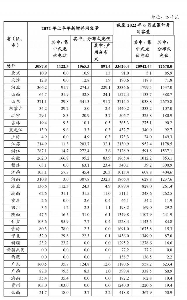 2022年上半年光伏發(fā)電建設(shè)運行情況