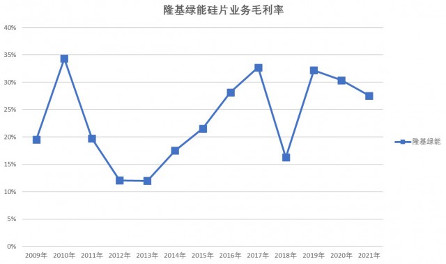 近些年來,盈利能力穩(wěn)定的硅片環(huán)節(jié)被認(rèn)為具有一定的競爭壁壘,而電池片環(huán)節(jié)則給人以相對弱勢的感覺。不過,參考隆基綠能硅片業(yè)務(wù)毛利率變化,其實(shí)硅片環(huán)節(jié)亦有顯著的周期性特征,強(qiáng)勢地位并非堅(jiān)不可摧。