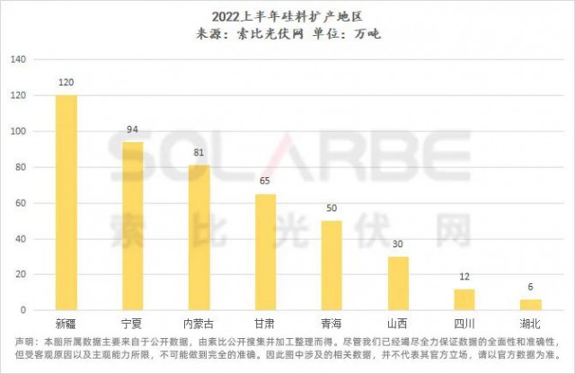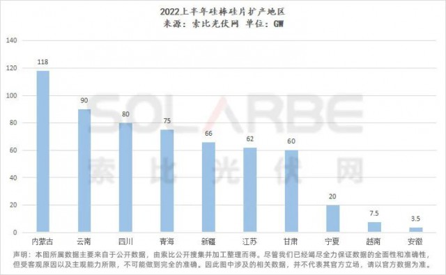 從擴產(chǎn)地區(qū)來看,與硅料大同小異,硅棒硅片擴產(chǎn)地區(qū)也較多集中于內蒙古、云南、四川、新疆、青海等地。