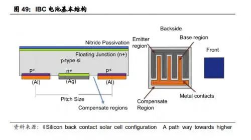 國海證券指出,IBC電池結(jié)構(gòu)特點(diǎn)鮮明,移除正面柵線最大化光照利用,但生產(chǎn)工藝復(fù)雜。