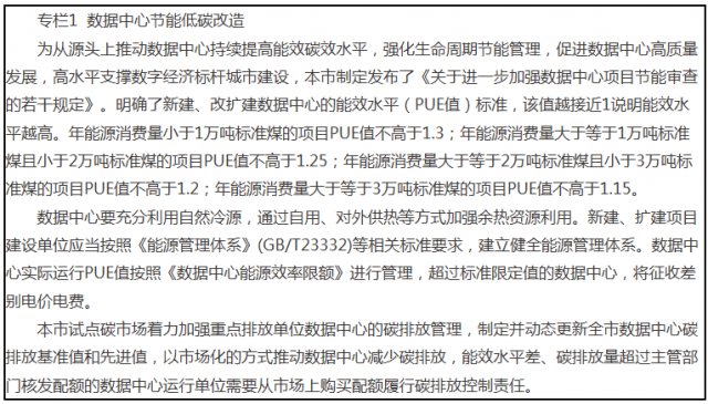 第三章 全面推進(jìn)綠色低碳循環(huán)發(fā)展將應(yīng)對(duì)氣候變化和節(jié)能作為推進(jìn)高質(zhì)量發(fā)展的重要途徑,全面落實(shí)首都城市戰(zhàn)略定位,深入貫徹減量發(fā)展、綠色發(fā)展理念,統(tǒng)籌推進(jìn)產(chǎn)業(yè)結(jié)構(gòu)、能源結(jié)構(gòu)、城市功能綠色低碳轉(zhuǎn)型,加快釋放綠色發(fā)展新動(dòng)能,有力促進(jìn)京津冀區(qū)域綠色發(fā)展。一、深度推動(dòng)產(chǎn)業(yè)結(jié)構(gòu)優(yōu)化調(diào)整(一)系統(tǒng)推進(jìn)產(chǎn)業(yè)結(jié)構(gòu)升級(jí)積極發(fā)展科技含量高、資源消耗低、碳排放少的高精尖產(chǎn)業(yè),加快高耗能高排放生產(chǎn)制造企業(yè)及生產(chǎn)環(huán)節(jié)的退出及高耗能設(shè)備的淘汰,有序引導(dǎo)不符合首都功能定位的一般制造業(yè)轉(zhuǎn)移退出,嚴(yán)控、壓減在京石化生產(chǎn)規(guī)模和水泥產(chǎn)能。修訂并嚴(yán)格執(zhí)行新增產(chǎn)業(yè)禁止和限制目錄,按照先進(jìn)節(jié)能低碳標(biāo)準(zhǔn)設(shè)計(jì)準(zhǔn)入條件,堅(jiān)決控制高耗能、高排放項(xiàng)目新建和改擴(kuò)建。強(qiáng)化環(huán)評(píng)、能評(píng)和碳評(píng)源頭協(xié)同控制,嚴(yán)格控制新建項(xiàng)目能耗和碳排放水平。(二)深入激發(fā)綠色發(fā)展新動(dòng)能以綠色技術(shù)創(chuàng)新引領(lǐng)高精尖產(chǎn)業(yè)發(fā)展,持續(xù)推進(jìn)綠色制造體系建設(shè),努力培育新能源、新材料、新能源汽車、燃料電池、氫能等產(chǎn)業(yè)新增長(zhǎng)點(diǎn)。建設(shè)新能源產(chǎn)業(yè)集聚中心和產(chǎn)業(yè)化示范基地,提升產(chǎn)業(yè)鏈、供應(yīng)鏈現(xiàn)代化水平,積極創(chuàng)建國(guó)家綠色產(chǎn)業(yè)基地,打造具有國(guó)際競(jìng)爭(zhēng)力的綠色產(chǎn)業(yè)集群。培育發(fā)展綠色智慧技術(shù)服務(wù)新業(yè)態(tài),為綠色低碳發(fā)展提供技術(shù)支持。到2025年,基本形成具有首都特點(diǎn)的現(xiàn)代化綠色經(jīng)濟(jì)體系。(三)持續(xù)推動(dòng)產(chǎn)業(yè)綠色化改造對(duì)標(biāo)國(guó)際國(guó)內(nèi)先進(jìn)能效和碳排放水平,實(shí)施一批節(jié)能低碳技術(shù)改造項(xiàng)目。開(kāi)展重點(diǎn)行業(yè)綠色化改造,推動(dòng)燃?xì)怆姀S、燃?xì)忮仩t、工業(yè)窯爐、污水處理廠、數(shù)據(jù)中心等余熱余壓回收利用,加快實(shí)施道路照明節(jié)能改造,提升新建數(shù)據(jù)中心能效標(biāo)準(zhǔn),持續(xù)開(kāi)展數(shù)據(jù)中心節(jié)能降碳改造。大力發(fā)展循環(huán)經(jīng)濟(jì),全面推行清潔生產(chǎn),推動(dòng)資源綜合利用。開(kāi)展市級(jí)以上園區(qū)綠色低碳循環(huán)改造,強(qiáng)化園區(qū)資源梯級(jí)利用和系統(tǒng)優(yōu)化?!笆奈濉睍r(shí)期制造業(yè)碳排放基本實(shí)現(xiàn)增減平衡,單位工業(yè)增加值能耗和二氧化碳排放分別下降12%以上和20%左右。二、深入推進(jìn)能源結(jié)構(gòu)低碳轉(zhuǎn)型大力推進(jìn)以電代煤,有序推進(jìn)以電代油、以電代氣,嚴(yán)控化石能源消費(fèi)增長(zhǎng),確保能源活動(dòng)碳排放總量不超過(guò)“十三五”總體水平。加快削減工業(yè)用煤,現(xiàn)有燃煤機(jī)組作為應(yīng)急備用機(jī)組,有序推進(jìn)山區(qū)村莊煤改清潔能源,基本實(shí)現(xiàn)淺山區(qū)村莊“無(wú)煤化”,非應(yīng)急情況下基本不再使用煤炭,煤炭消費(fèi)總量控制在100萬(wàn)噸以內(nèi)。推進(jìn)油品消費(fèi)總量穩(wěn)中有降,加快機(jī)動(dòng)車電氣化替代,控制航空煤油過(guò)快增長(zhǎng)。控制天然氣利用規(guī)模,天然氣消費(fèi)總量控制在200億立方米左右。因地制宜發(fā)展本市可再生能源,大力發(fā)展光伏、地?zé)?,適度發(fā)展風(fēng)電和垃圾焚燒發(fā)電,促進(jìn)氫能示范應(yīng)用。推進(jìn)分布式發(fā)電就地并網(wǎng)使用,積極發(fā)展“新能源+儲(chǔ)能”“源網(wǎng)荷儲(chǔ)”和多能互補(bǔ)。按照“宜建盡建、應(yīng)用盡用”的原則,優(yōu)先使用可再生能源保障供給,完善可再生能源利用的基礎(chǔ)設(shè)施和產(chǎn)業(yè)配套,推動(dòng)可再生能源、新技術(shù)與城市融合發(fā)展。2025年全市可再生能源比重達(dá)到14.4%以上。大力發(fā)展地?zé)峒盁岜?、太?yáng)能、儲(chǔ)能蓄熱等清潔供熱模式,2025年全市可再生能源供熱面積占比達(dá)到10%以上。(三)推動(dòng)京津冀區(qū)域能源低碳轉(zhuǎn)型加強(qiáng)京津冀能源一體化發(fā)展,強(qiáng)化低碳能源開(kāi)發(fā)合作。建設(shè)跨區(qū)域的電力、天然氣、油品等能源輸送通道,推進(jìn)區(qū)域內(nèi)能源基礎(chǔ)設(shè)施互聯(lián)互通。共同開(kāi)發(fā)區(qū)域內(nèi)風(fēng)能和太陽(yáng)能等資源,優(yōu)先安排可再生能源、清潔能源和高效電源上網(wǎng)。高標(biāo)準(zhǔn)建設(shè)張家口可再生能源示范區(qū)。促進(jìn)北京與河北新能源基地合作共建,加快西北、南部方向綠色電力輸送通道和配電調(diào)峰儲(chǔ)能設(shè)施建設(shè),切實(shí)提高本市綠色電力消納能力,2025年全市外調(diào)綠色電力力爭(zhēng)達(dá)到300億千瓦時(shí)。有序布局氫能產(chǎn)業(yè)發(fā)展,以科技創(chuàng)新為核心,強(qiáng)化
