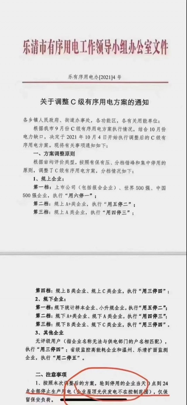 事實(shí)上,去年8、9月份就曾因煤電供應(yīng)緊張下的電力缺口和“能耗雙控”政策導(dǎo)致多地出臺(tái)了限電措施,盡管本輪限電與去年的限電背景不同,但最終帶來的結(jié)果是一致的,即停產(chǎn)停工,而安裝了分布式光伏的工廠則具有一定“豁免權(quán)”。