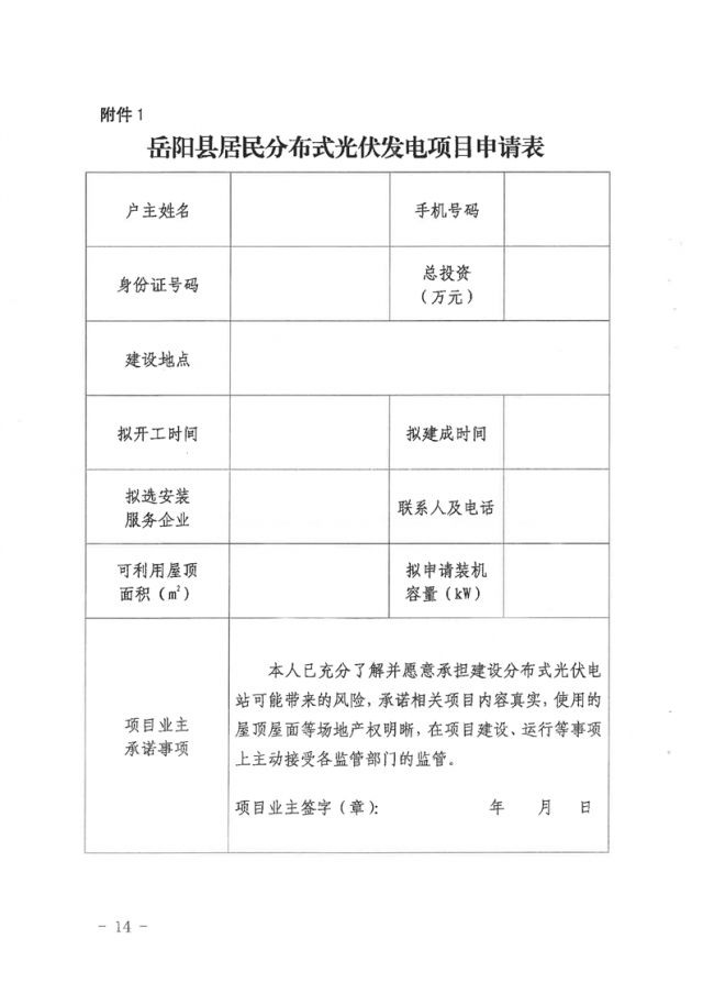 (一)《岳陽縣居民分布式光伏發(fā)電項目申請表》