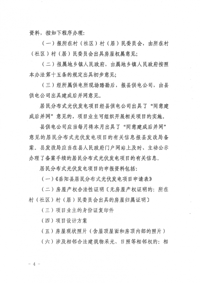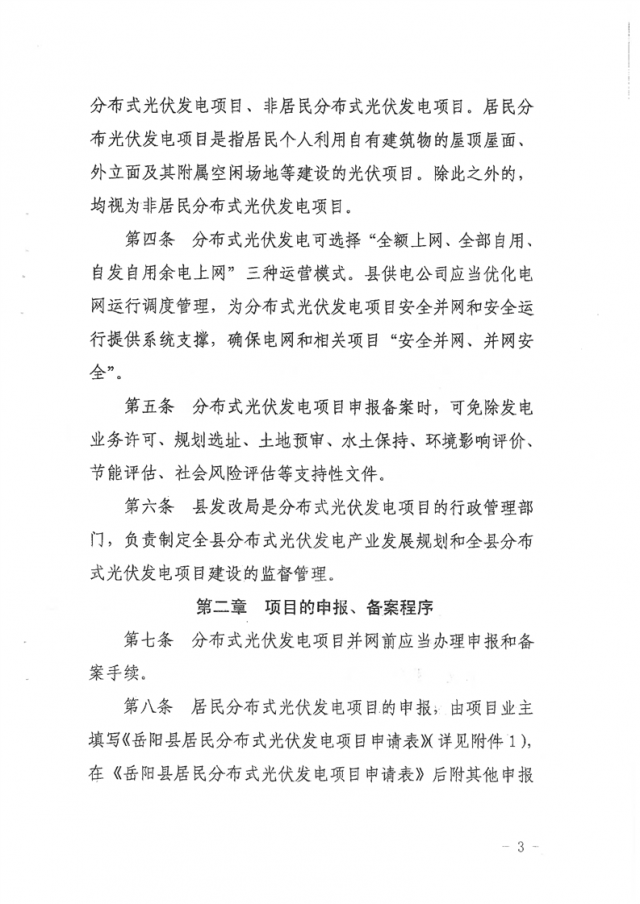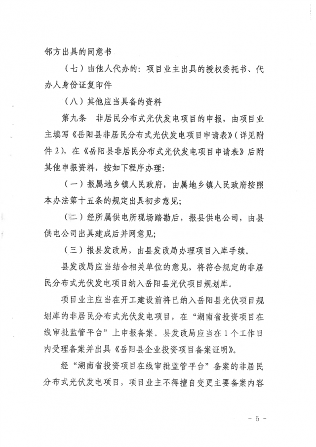8月17日,湖南省岳陽市岳陽縣人民政府印發(fā)《岳陽縣分布式光伏發(fā)電項目管理暫行辦法》,文件對居民分布式光伏發(fā)電項目、非居民分布式光伏發(fā)電項目申報資料予以明確。