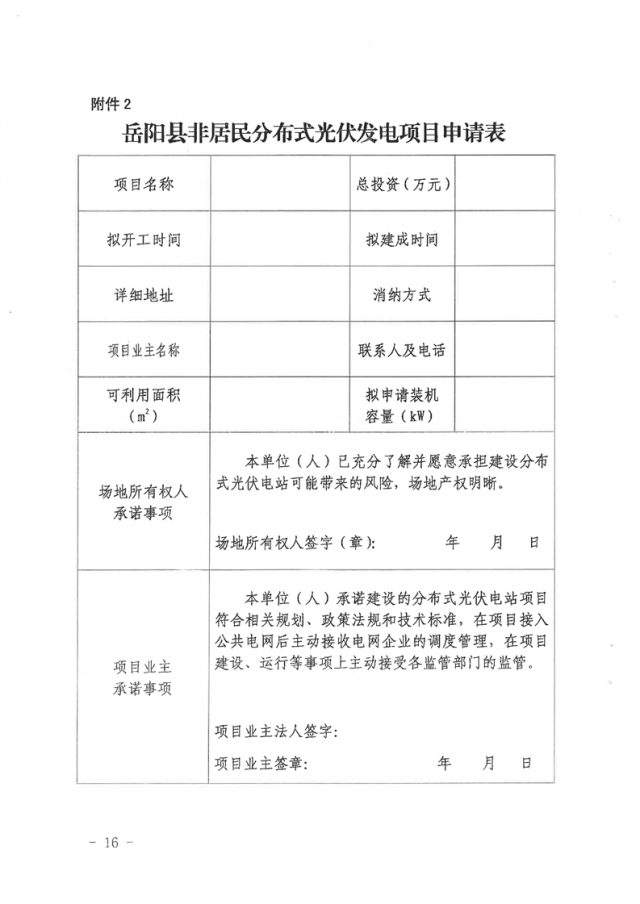 (一)《岳陽縣非居民分布式光伏發(fā)電項目申請表》