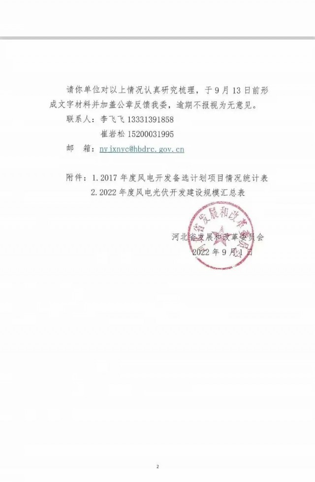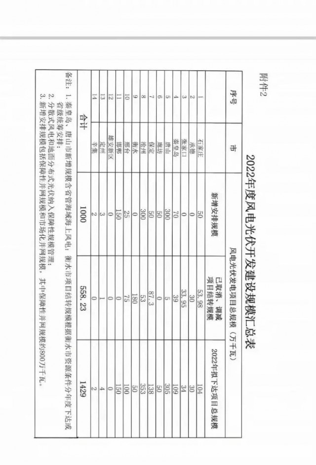 9月1日,河北省發(fā)改委發(fā)布了《關(guān)于征求風(fēng)電光伏項(xiàng)目開發(fā)建設(shè)意見建議的函》,并公示了 2022年度風(fēng)電、光伏開發(fā)建設(shè)規(guī)模匯總表。
