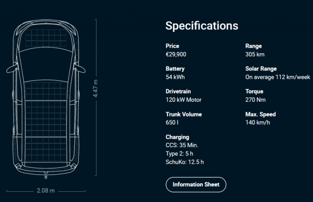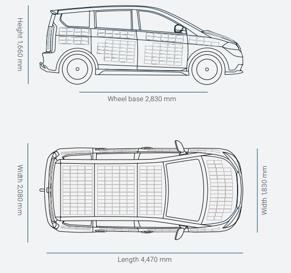 這款太陽能電動車Sion配一臺120kW電機,可以產(chǎn)生馬力161Ps,最大輸出扭矩270N·m。