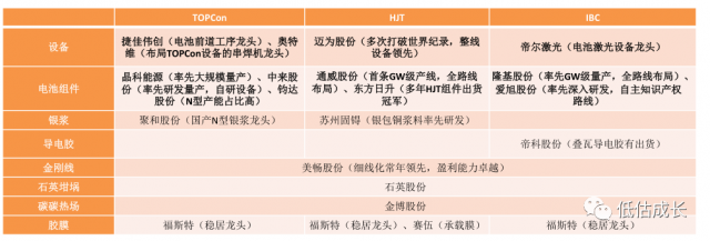 效率:IBC(疊加)>TOPCon(雙面)>HJT