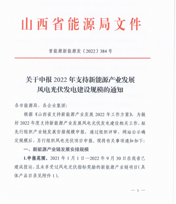 申報2022年支持新能源產(chǎn)業(yè)發(fā)展風(fēng)電光伏發(fā)電建設(shè)規(guī)模通知