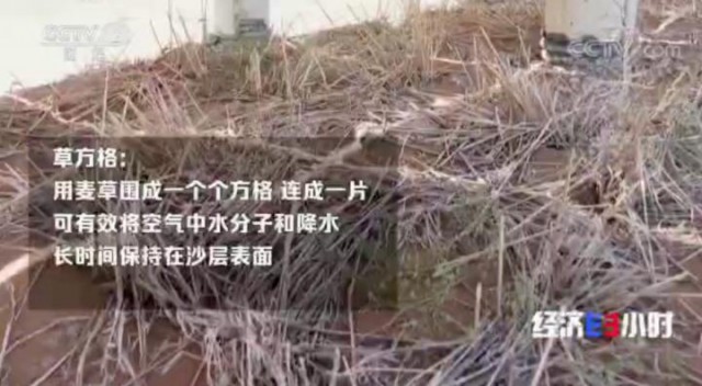 在中衛(wèi)沙漠光伏產(chǎn)業(yè)園,隨處可以見到這種四四方方的格子,這就是當(dāng)?shù)刂紊车拿孛芪淦?-草方格。用麥草圍成一個(gè)個(gè)方格連成一片,可以有效將空氣中的水分子和降水長時(shí)間保持在沙層表面,為淺根性植物的生長提供水分,在方格中央及周圍撒上草籽,一旦有雨水,它們就能長得很好,而且在植物生長過程中,連成片的光伏板阻擊發(fā)揮了重要的庇護(hù)和助力作用。光伏板大面積安裝后,白天為地面植物擋住過強(qiáng)的陽光,有效降低地表水蒸發(fā),并且有效降低風(fēng)速。夜間光伏板會凝聚部分水分,早上太陽一出來,露水滴下來滋潤著光伏園內(nèi)的土壤,有了光伏板的庇護(hù),植物在沙漠中可以更好的扎根生長。
