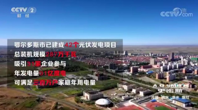 目前鄂爾多斯市已經(jīng)建成42個(gè)光伏發(fā)電項(xiàng)目,總裝機(jī)規(guī)模287萬千瓦,吸引了31家企業(yè)參與,研發(fā)電量和達(dá)31億度電,以每戶家庭年用電量1000度來計(jì)算,可以滿足300萬戶家庭的年用電量。