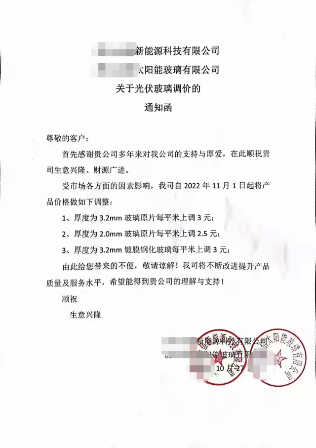 除了電池之外,近日有消息稱,光伏玻璃也在醞釀漲價,根據某企業(yè)調價函,玻璃價格上漲2.5-3元/平方米。