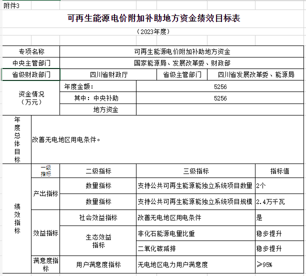 3.可再生能源電價附加補助地方資金績效目標(biāo)表