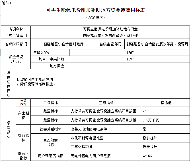 附件:1.可再生能源電價附加補助地方資金預算匯總表3.可再生能源電價附加補助地方資金績效目標表