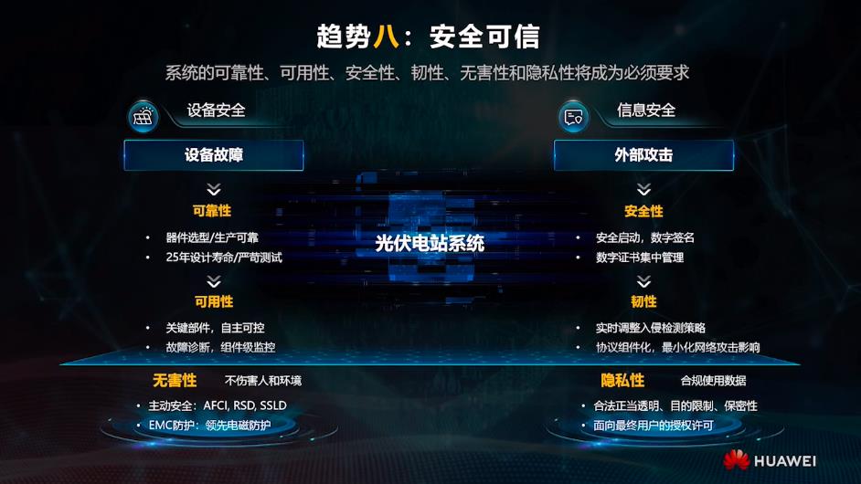 華為此次重磅發(fā)布涵蓋智能光儲發(fā)電機、組串式儲能、電芯級精細管理、安全可信、全面數(shù)字化、AI增效等在內的十大趨勢,展望和引領光伏行業(yè)的未來發(fā)展趨勢,通過技術創(chuàng)新實現(xiàn)電網(wǎng)增強、安全可靠、高效運維等,推動光伏成為未來的主力能源。