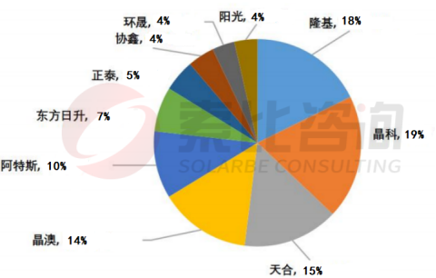 圖:2022年11月中國光伏組件生產(chǎn)企業(yè)產(chǎn)出份額