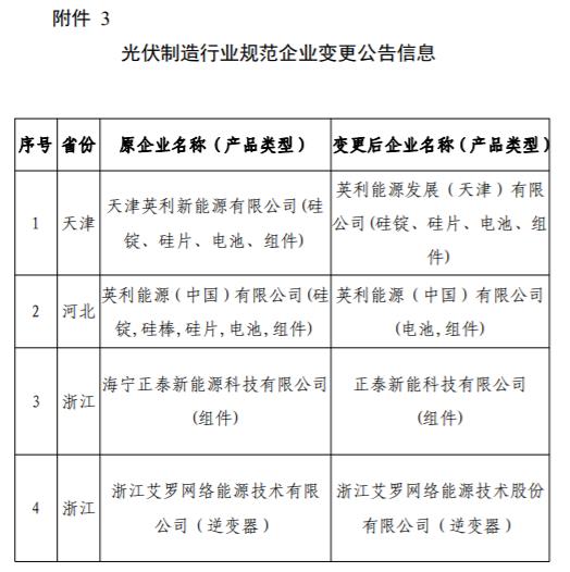 3.光伏制造行業(yè)規(guī)范企業(yè)變更公告信息