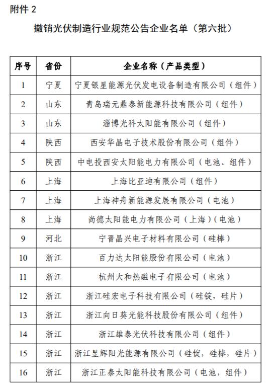 2.撤銷光伏制造行業(yè)規(guī)范公告企業(yè)名單(第六批)