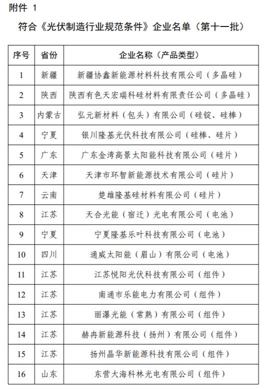 1.符合《光伏制造行業(yè)規(guī)范條件》企業(yè)名單(第十一批)