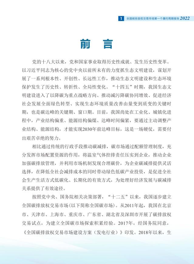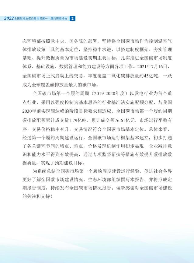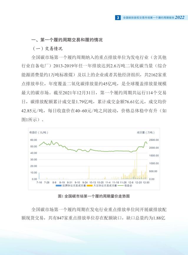 1月1日,生態(tài)環(huán)境部消息,為系統(tǒng)總結(jié)全國碳排放權交易市場(以下簡稱:全國碳市場)第一個履約周期建設運行經(jīng)驗,促進社會各界更好了解全國碳市場建設情況,生態(tài)環(huán)境部組織編制了《全國碳排放權交易市場第一個履約周期報告》。