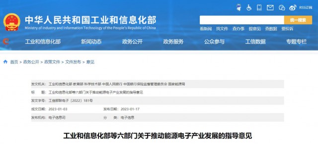 1月17日,工信部等六部門發(fā)布《關(guān)于推動(dòng)能源電子產(chǎn)業(yè)發(fā)展的指導(dǎo)意見》(以下簡(jiǎn)稱《意見》)。
