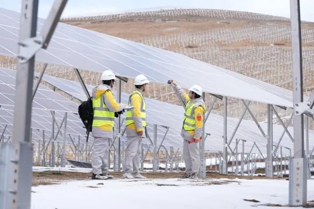 盡管身處海拔4600米的冰天雪地里,柯拉光伏電站的建設(shè)者們的內(nèi)心無比熾熱。他們將工程設(shè)計之初的3個月“冬歇期”科學轉(zhuǎn)化為“冬季施工大干期”,在施工車輛的轟鳴往來中,在塵土與雪花齊飛中,開足馬力推進各項工程任務(wù)。