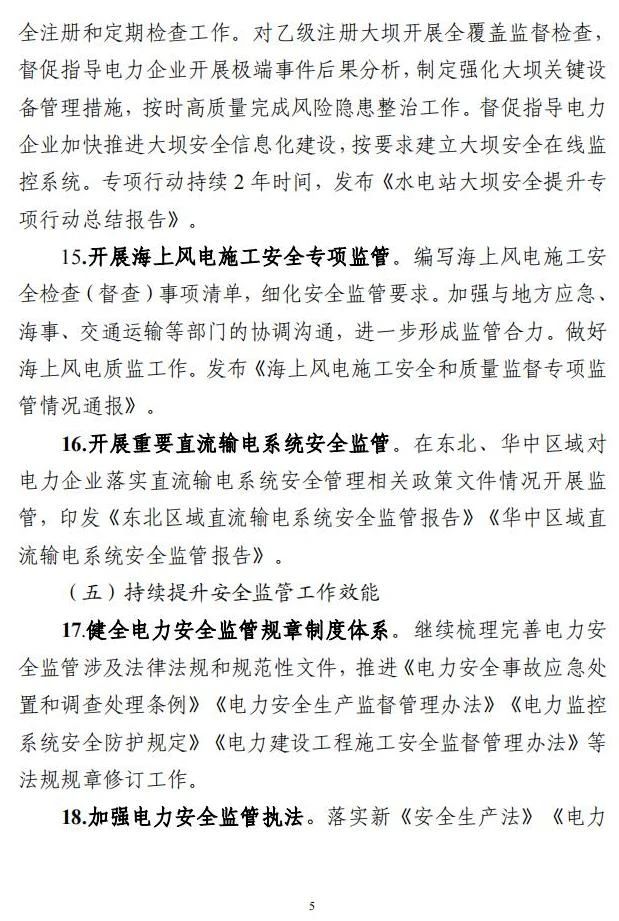 加強施工安全監(jiān)管和工程質(zhì)量監(jiān)督工作。對全國在建電力建設(shè)重點工程(水電、大型火電、抽水蓄能、特高壓工程、大型風(fēng)電光伏工程)開展“四不兩直”施工安全及質(zhì)量監(jiān)督專項督查。做好以信用為基礎(chǔ)的新型電力安全監(jiān)管機制試點。