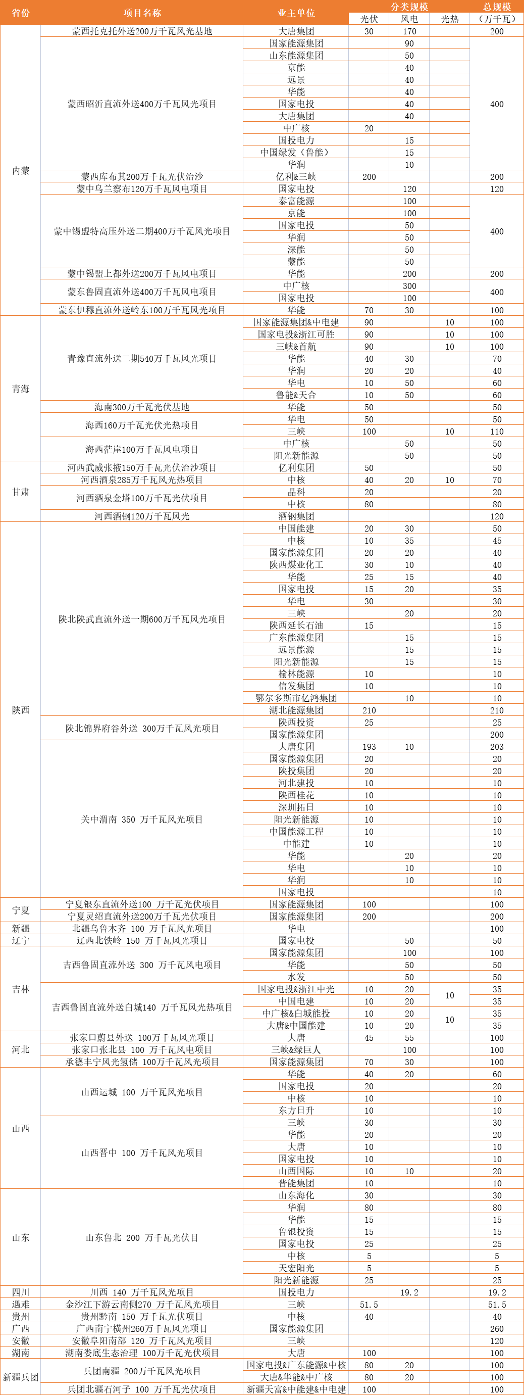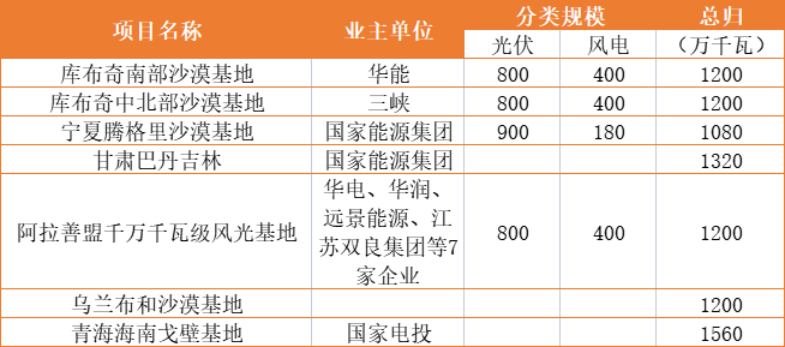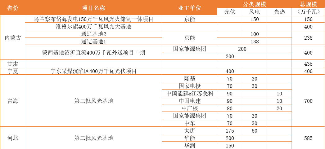 說(shuō)明:上述數(shù)據(jù)通過(guò)公開信息整理,各企業(yè)數(shù)據(jù)存在未明確項(xiàng)目,具體以企業(yè)官方數(shù)據(jù)為準(zhǔn)。此外,大基地存在聯(lián)合體業(yè)主,本表數(shù)據(jù)以牽頭企業(yè)為主。