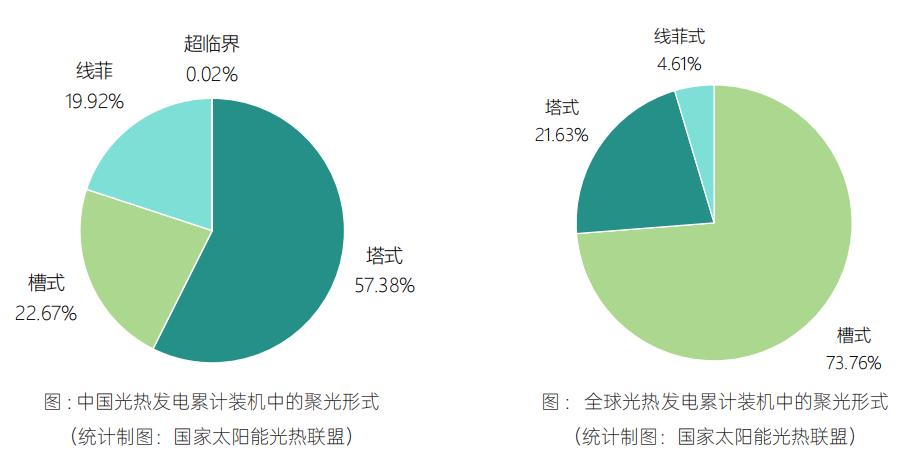 中國和全球光熱發(fā)電累計(jì)裝機(jī)中的聚光形式
