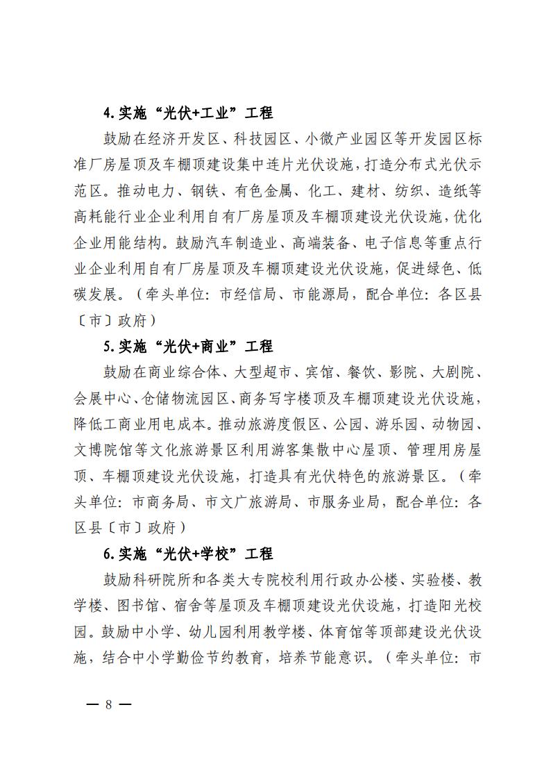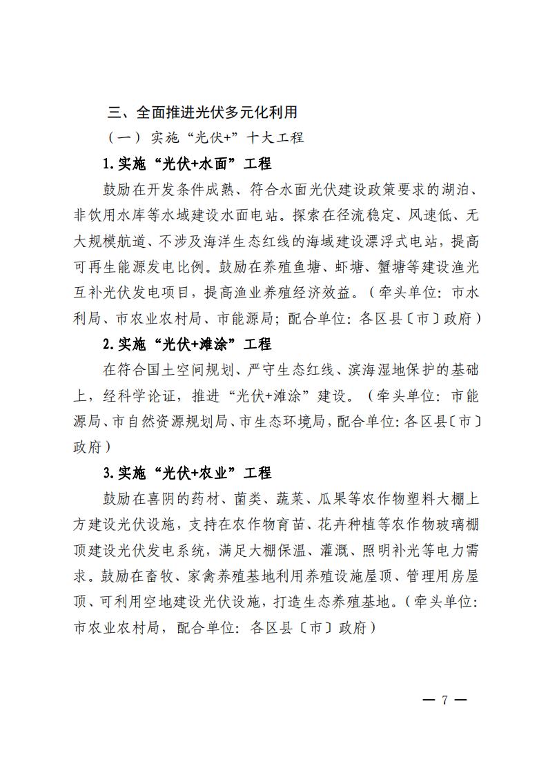 同時還提到全面推進(jìn)光伏多元化利用:實(shí)施“光伏+”十大工程,大力推進(jìn)整縣(市、區(qū))分布式光伏開發(fā),開展光伏資源排查等。
