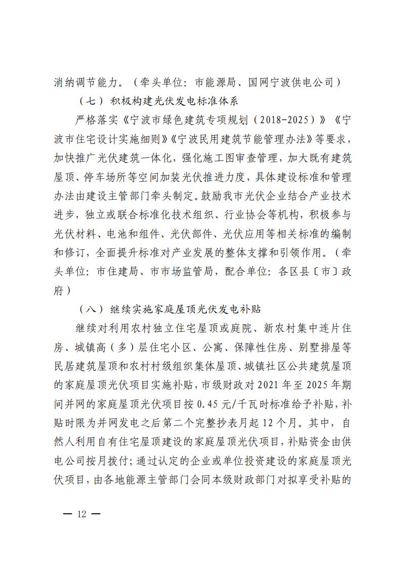 市級財政對2021年至2025年期間并網(wǎng)的家庭屋頂光伏項(xiàng)目按0.45元/千瓦時標(biāo)準(zhǔn)給予補(bǔ)貼,補(bǔ)貼時限為并網(wǎng)發(fā)電之后第二個完整抄表月起12個月。